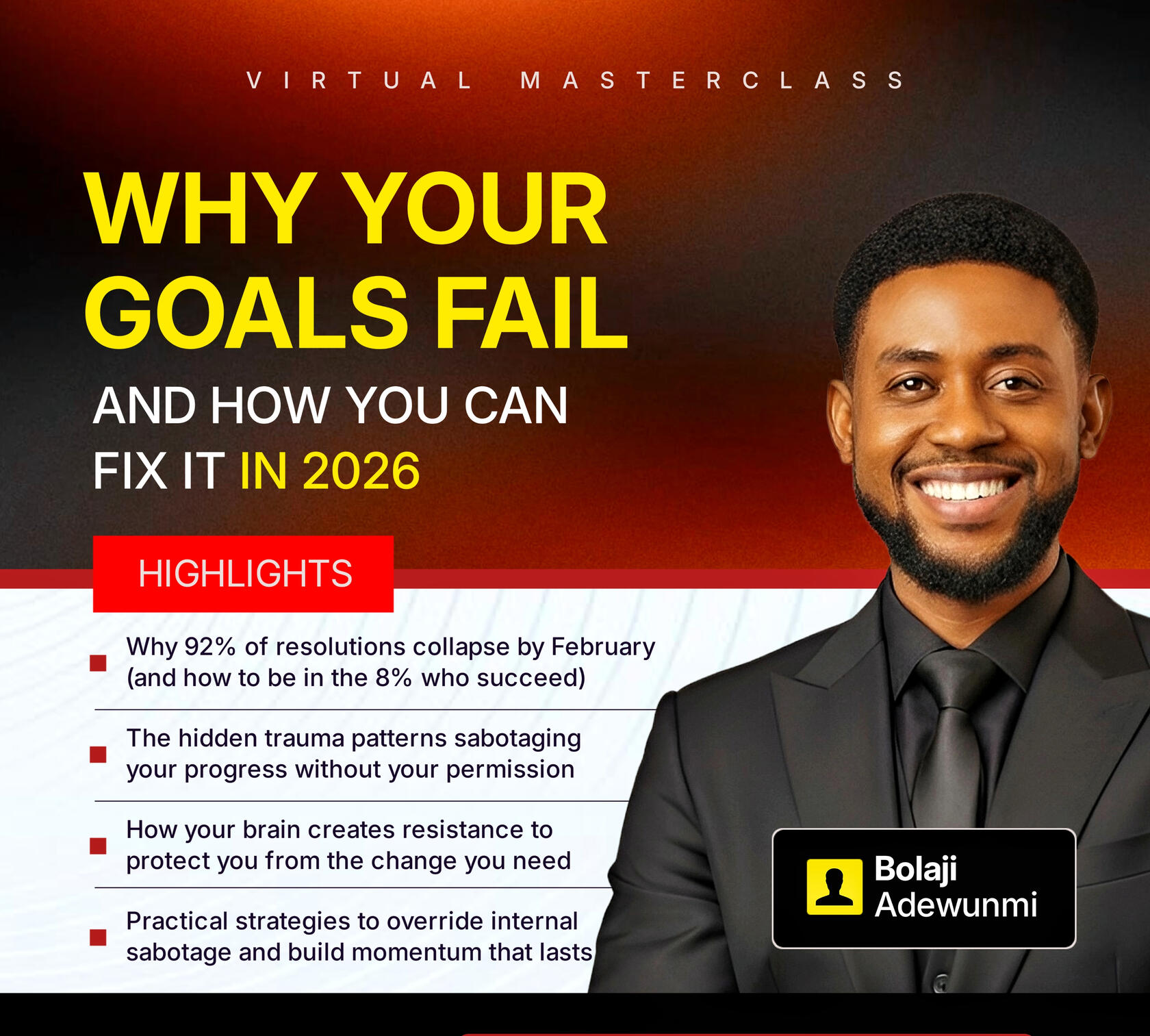 Join Bolaji Adewunmi for a masterclass that exposes what really sabotages your goals every year and gives you the system to finally break free in 2026.